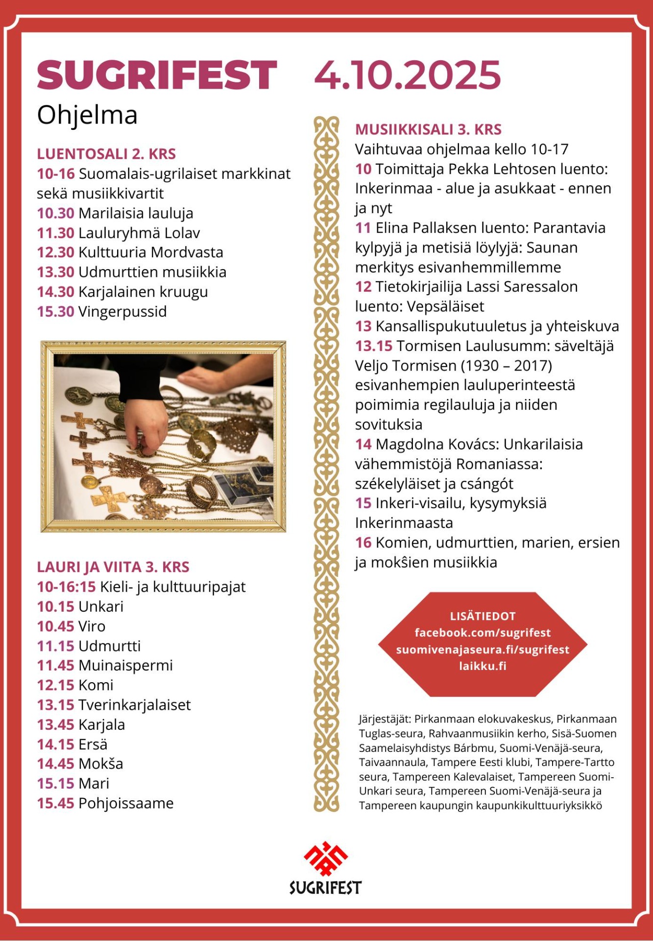 "Vepsäläiset" Tietokirjailija Lassi Saressalo Kulttuuritalo Laikku la 4.10. klo 12.-12.45. Luento on osa suomalais-ugrilaista sukukansapäivää.
